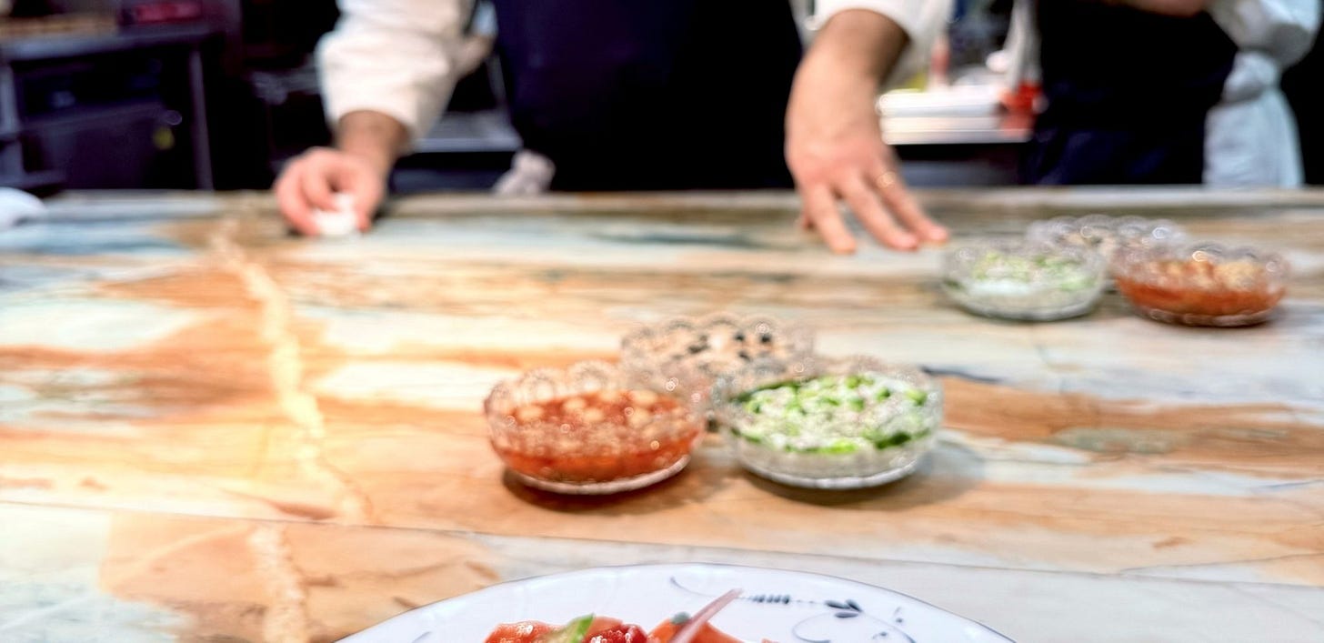 And then, almost by accident, I ended up at my chef mentor Nadav’s new restaurant on a mock service night, weeks before the official opening. He invited me to stand at the pass, watch the kitchen do its dance, and to taste everything coming out of that line. Nadav was one of my first chefs. He’s the one who saw something in me when I was still figuring out if I even belonged in a kitchen. Watching him now, in this new elevated phase of his cooking, felt like witnessing growth in real time. It felt full circle.